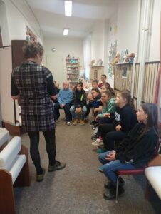 Ve středu 5.11.2025 se žáci čtvrté třídy vydali na pravidelnou návštěvu boskovické knihovny. V knihovně nás přivítala naše oblíbená průvodkyně světem literatury, která si pro děti připravila besedu na téma Pravěk. Ačkoliv děti toto téma ještě neprobíraly, během besedy prokázaly, že o pravěku už něco vědí. Povídání bylo pojato velmi zábavně od Velkého třesku až po Dobu ledovou.