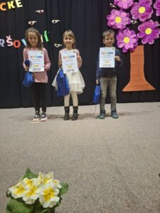 Dne 19.3.2026 jsme měli již podruhé tu čest účastnit se recitační soutěže v Doubravici. Za naši školu vyrazili do soutěže výherci školního kola. V první kategorii prvních tříd soutěžila Ema Kopřivová a Jakub Procházka, kteří měli velký úspěch a Emička získala krásné první a Kubík druhé místo. V druhé kategorii druhých a třetích tříd soutěžila Valerie Sýkorová a Tomáš Přibyl. V třetí kategorii čtvrtých a pátých tříd pak Jirka Šebela a Richard Písařík, který získal překvapivě třetí místo.